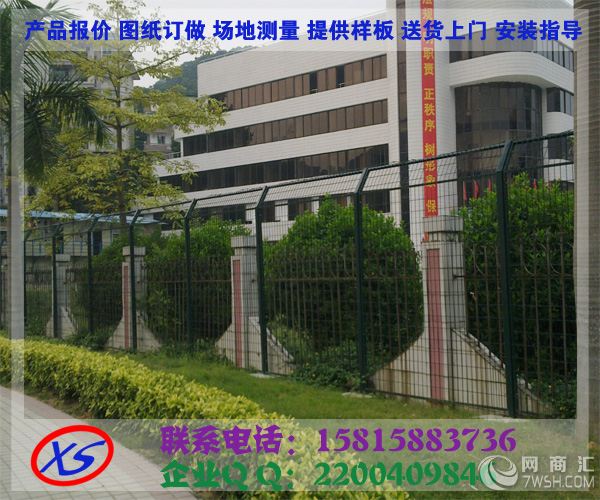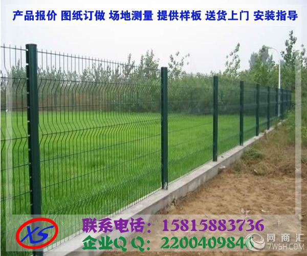 护栏网 产品规格: (1)、包塑丝经3.8mm 材料:采用低碳钢丝、铝镁合金丝织焊接而成,具有防腐、防老化、抗晒、耐候等特点。 防腐形式:电镀、热镀、喷塑、浸塑。 生活小区隔离栅为标准件组装防护网产品小区护栏网的主体采用钢丝网片、立柱组成,连接部件的尺寸配比均为标准化生产,产品适合于高度在3米以内,对网栏整体强度和美观度要求较高的防护围界使用。