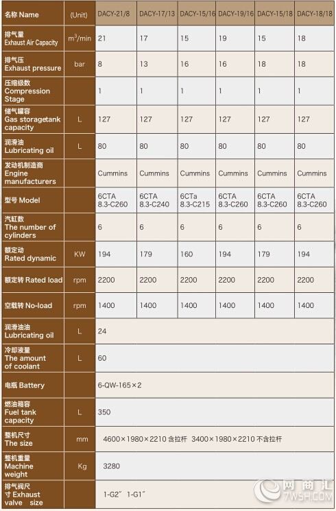 冷却系统 9)燃油系统 10)管路系统 德耐尔新型高压柴油移动螺杆压缩机DACY-17/13产品参数 德耐尔公司通过对技术创新的持续追求,适应市场发展方向,开发出更可靠、高性价比的单级高压移动式螺杆空气压缩机。综合性能出色,更广泛应用于高效钻孔、管道式压及相关领域。