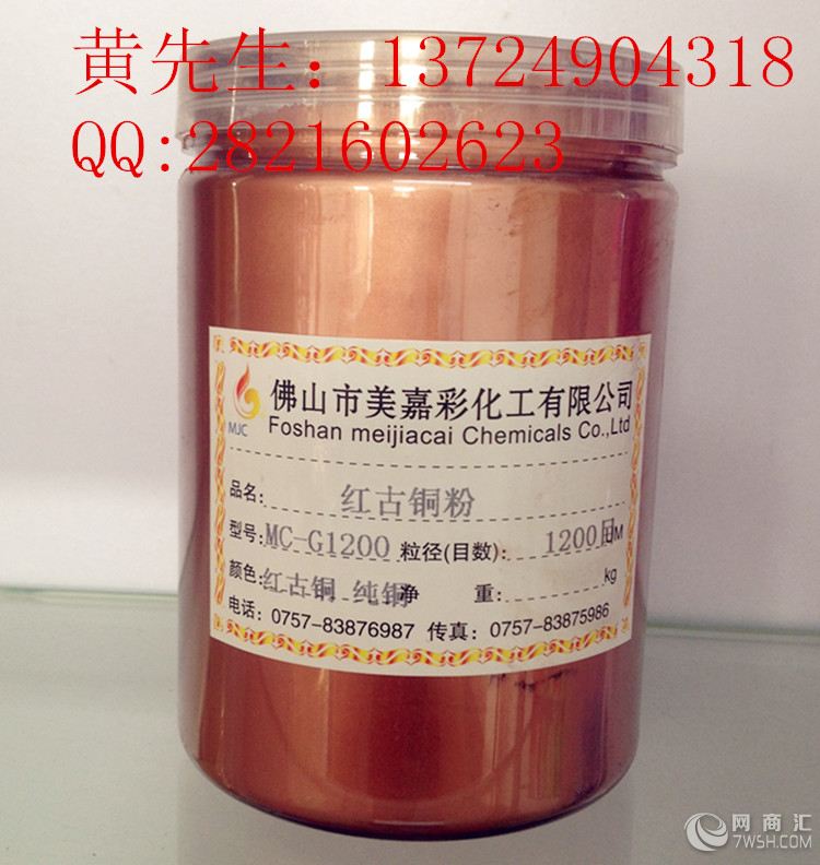 古铜粉说明: 佛山美嘉彩铜金属粉是一种浮型片状颜料,由一定比例的铜、锌和铝合金,经熔炼、球磨、分级到所需要的规格和效果而成。铜金粉的色相可分为黄金粉、青金粉、红金粉、紫铜粉、古铜粉等。