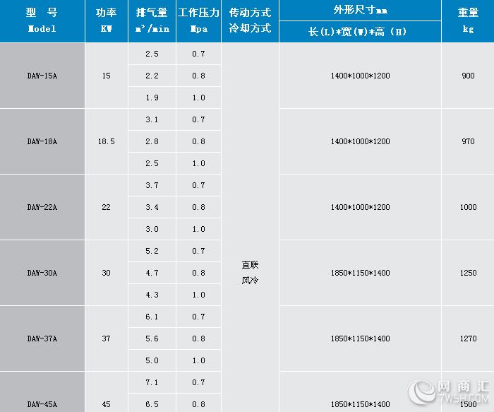 岳阳德耐尔无油水润滑空气压缩机DAW-15A产品参数