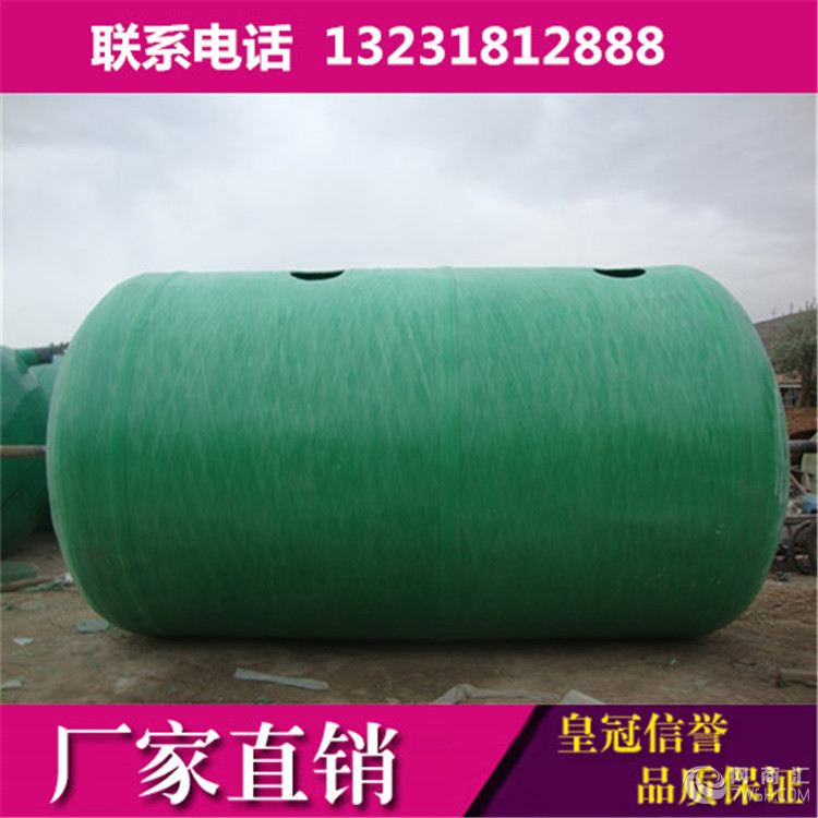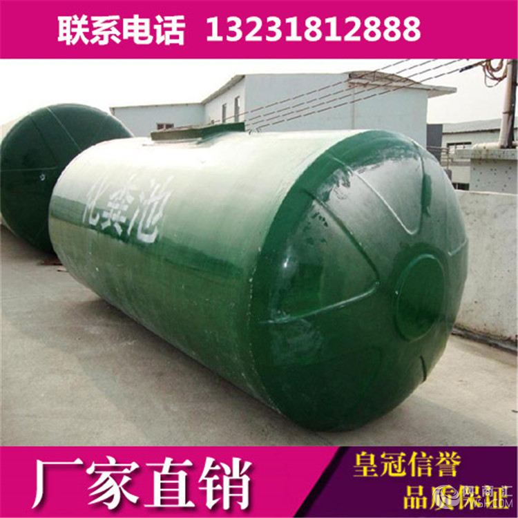 新型材料环保型整体式玻璃钢化粪池适用于办公楼住宅楼别墅,和生活小区。是替代目前国内广泛使用砖砌化粪池的理想产品,成功避免了砖混结构化粪池的渗漏、运行工况不佳、使用寿命短暂、地下水遭受污染等重大问题,从而提供了社会效益和环境效益。 玻璃钢材料耐酸性腐蚀、经久耐用,消除了砖砌池不适应酸性的状况。抗击抗压强度高,卡车在上部碾压不沉降不变形。 玻璃钢化粪池是兼化粪池和处理于一体的,使用与城市居民生活小区、大型写字楼等生活污水的一种质轻高效份的处理装置。 其主要功能和作用是对来自暗井的生活污水进行沉淀,以去除废水中可沉和粗大物, 一、性能: 【产品特点及用途】概述: