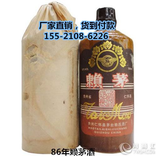 酒名:86年赖茅酒 香型:酱香型 包装:500ml*12瓶/箱 度数:53%vol 配料:高粱、小麦、水 产地:中国贵州 价格:来电议价 生产日期:见瓶标 生产厂家:贵州仁怀县茅台赖氏酒厂 「订购议价:15521086226‘黄先生’」「咨询电话:15521086226‘黄先生’」 赖茅酒无色(或微黄)透明,酱香优雅,幽雅细腻,酒体圆润,回味悠长,空杯留香持久,饮之甘美舒适,饮后怡然畅快。使消费者能得到健康的享受,为直接的就是,适量饮用赖茅酒后,不伤肝,不伤胃,不口干,不上头,不刺喉,不误事。 一是酱香酒中天然酚类化合物多。医学界认为,干红葡萄酒能预防心血管疾病,其原因就是酒中含有大量的酚类物质。 二是酱香酒中有机酸含量高。酱酒中含有大量的酸类物质,由于酒精相对容易挥发,所以接酒时开始酒精度高,后面越来越低;而酸相对来说不易挥发,标准规定酸度为1.5~3.0g/L,而其他白酒的酸度多在0.5~1.7g/L范围内。中医认为酸能健胃,保肝软化血管。 三是茅台酒中易挥发物质少。曹怀仁酒经高温蒸馏和3年以上陈酿后,容易挥发的小分子物质已经通过化学反应逐渐转化为较大分子物质,由于储存时间长,能大限度地排除如醛类及硫化物等低沸点物质。因此,茅台酒中易挥发物质相对较少,不易挥发物质相对较多,对人的刺激性小,饮后不上头,不辣喉,不烧心。 四是酒的酒精浓度科学合理。酒精浓度为53%(v/v)左右,而在这一浓度酒精分子和水分子缔合为紧密,是世界上所有蒸馏酒中科学的酒精浓度。加之要经3年以上的窖藏陈酿,所以酒体较柔和,酒度高而不烈,对人体的刺激性小。 酱香型白酒,是醇香卓绝的高品质白酒,有很多实例佐证长期适量饮用酱香型酒有益于身体健康。中央红军长征途经茅台时,由于缺医少药,将士们便用茅台酒疗伤养病,饮酒消肿止痛,舒筋活血,消除疲劳,以酒清洗伤口等。茅台酒厂的历代酒师多长寿,多数人都活到了八、九十岁。1993年,遵义地区医院的专家们在对茅台酒厂专项职工体检过程中惊讶地发现:酒厂职工即使每天饮用150克以上的茅台酒,肝也无损害。接受此次专项体检的是制酒车间和酒库的40名职工,年龄在35~54岁之间,因生产和工作需要,都大量饮用茅台酒超过10年,时间长者达37年。这次体检结果,除一例因原患有肝炎未愈继续喝酒终导致肝硬化外,其余39人的身体都很健康,肝脏无任何病变。 付款方式1:货到付款(物流公司代收货款) 付款方式2:等知道放货(客户等货到后打款,然后提货) 运费一律到付,2-4天送到,需中转4-7天,订单跟踪请联系我们! 温馨提示:本公司全国物流发货,订单生效后,我们当天为您安排发货,商品一般发到市区、县城,需要上门提货。