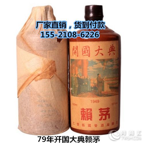 『酒名』:1979年赖茅酒(开国大典) 『香型』:酱香型 『包装』:500ml*12瓶/箱 『度数』:53%vol 『配料』:高粱、小麦、水 『产地』:中国贵州 『价格』:来电议价 『生产日期』:见瓶标 『储藏方式』:常温、避光 『生产厂家』:仁怀县国营酒厂酿造 『议价热线』:15521086226‘黄生’ 产品中心: 1994年圆瓶习酒.1996年习水大曲.1980年扁杜康酒.1994年扁瓶习酒 2004年茅台习酒.1992年飞仙赖茅.1993年回归赖茅.1994年吉祥赖茅 1983年酱香老酒.1978年人民公社.1995年回归赖茅.1997年回归赖茅 1986年贵州老窖.1986年茅江窖酒.1987年茅浆窖酒.1992年酱香郎酒 1995年茅台怀酒.1995年茅台窖酒.1981年五粮液酒.1985年五粮液酒 1987年五粮液酒.1992年五粮液酒.1997年剑南春酒.2000年四川酒神 2003年状元红酒.2000年糊涂酒.1986年金奖赖茅.1993年武陵酒 全国各地各种香型优质老酒、批发、团购、零售、合作。 咨询热线:155-2108-6226‘黄生’ 1.酱香型白酒:酒色微黄而透明.酱香.焦香.糊香配合谐调.口味细腻.优雅.空杯留香持久. 2.浓香型白酒:窖香浓郁.口味丰满.入口绵甜干净.纯正. 3.清香型白酒:酒色清亮透明.口味特别净.清香纯正.后味很甜. 4.米香型白酒:口味柔和.蜜香清雅.入口绵甜.后味怡畅. 5.凤香型白酒:无色透明.醇香秀雅.醇厚丰满.甘润挺爽.诸味协调.尾净悠长. 6.董香型白酒:清澈透明.药香舒适.香气典雅.酸度较高.后味较长. 7.豉香型白酒:玉洁冰清.豉香独特.醇和甘滑.余味爽净. 8.芝麻香型白酒:芝麻香突出.幽雅细腻.甘爽协调.尾净具有芝麻香特有风格. 9.特型白酒:酒色清亮.酒香芬芳.酒味纯正.酒体柔和.诸味协调.香味悠长. 10.兼香型白酒:(1)酱中带浓型.表现为芳香.舒适.细腻丰满.酱浓协调.余味爽净悠长, (2)浓中带酱型.主要表现在浓香带酱香.诸味协调.口味细腻.余味爽净. 公司实力雄厚,各类酒品库存充足,订单生效后,基本可以当天安排物流发货,广州市区免费送货,其它地方通过物流发货,可货到付款,欢迎来电咨询,产品附带合格检验报告,产品保证100%原厂正品,如对产品有任何疑问,可直接联系我们。