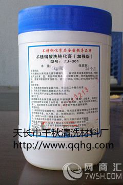不锈钢特种酸洗钝化膏 本产品清除氧化物、钝化表面、去除油脂效果超过国外同类产品的国际先进水平。 具有除油脱脂、酸洗彻底、钝化到位同步进行的三重功效,突破先除油脱脂再酸洗钝化的传统工艺方法,操作工艺简单,施工方便,省时省力。 用于不锈钢化工设备、贮罐、大型不锈钢旋压封头等相关不锈钢制品表面:油污、氧化物清除并使其钝化使处理后设备表面光洁平滑,银亮有光,稳定性强,耐腐蚀性明显提高,延长设备使用寿命。 使用说明: 1、使用前将焊渣清理干净,再将本膏涂刷于待处理表面。 2、清洗不锈钢表面和焊缝,涂本膏1-2毫米厚(焊缝处涂层略厚),保留1小时以上即可清洗。清理焊接部位时,严重热影响区用百洁布擦洗,表面油污用棉纱擦洗。 3、清洗热压封头等厚氧化层的热处理部件表面,涂本品2毫米厚,保留4小时以上,用钢丝刷普遍刷一次,再用回丝或棉纱反复擦洗,全部干净后,用水冲洗,应确保不锈钢表面冲洗干净,无残留痕迹,否则会影响表面外观效果。 产品标准:游离酸度(点)8。5 102 总酸度1。29 102 钝化膜厚度:(A0)150-600 自腐蚀电位:EC(MV/SCE) 202 孔腐蚀电位:EB(MV/SCE) 492 显微镜检测:钝化膜 表面无锈斑 无孔蚀 检查手段:使用国际通用不锈钢蓝点检查液检查。 注意事项:1、须在室外或通风良好的室内进行操作。2、配备橡胶手套、口罩、护目镜等保护用品操作。3、皮肤不得与本品接触,误触用水冲洗。4、所用工具应是耐腐蚀的不锈钢或塑料制品。 包装:10KG 25KG 50KG 适用材质型号:201、202、209、301、302、303、304、305、306、308、309、310、316、317、318、320、321、2253、347、384、385、XM7、631、661、670、671、680、685、690。 一 主要用途 本品对不锈钢全面酸洗钝化,清除各类油污、锈、氧化皮、焊斑等污垢,处理后不锈钢表面变成均匀光亮银白色,美观大方,大大提高不锈钢抗腐蚀性能和产品附加值,特别适俊武不锈钢表面处理材料厂,王先生13955097541用于304不锈钢零件、板材及其小型设备的清洗光亮处理。该不锈钢酸洗钝化液具有清洗速度快、彻底等特点,同时不锈钢工件清洗后光亮美观,对金属基腐蚀小,适用范围广,使用成本低,操作简单、安全可靠。 二 性能特点 1. 本技术充分考虑了用户的具体情况,将酸洗剂、光亮剂等有机的合为一体,简化和方便了清洗现场的安装和操作,操作简单,使用方便、经济实用,同时添加了天长市俊武不锈钢表面处理材料厂高效缓蚀剂、抑雾剂,防止金属出现过腐蚀和氢脆现象、抑制酸雾的产生。特别适用于小型复杂工件,不适合涂膏的情况,优于市场同类商品。 2. 不锈钢酸洗钝化液可处理各种形状工件,不需要专门设备,使用寿命长,可除去顽固性氧化皮,无黄烟等优点,清洗速度快、清洗废液处理简单方便,特别适用于小型复杂的不锈钢工件。如化工机械厂、石油化工设备厂、不锈钢制品厂、机械加工厂、不锈钢加工厂、封头厂、五金制品厂等。 三 理化指标 外观 浅色液体 可燃性 不燃 比重 >1.0左右 腐蚀性 略有腐蚀 酸碱性 酸性 四 使用方法 1. 将不锈钢酸洗钝化液倒入塑料容器中,根据不锈钢的材质和氧化皮严重程度不同,可以用原液或按1:1~4的比例加水稀释后使用;天长市俊武不锈钢表面处理材料厂,王先生13955097541 2. 放入工件,一般常温使用,也可加热到40—50度使用,浸泡3-20分钟或更长时间(具体时间和温度用户根据自己的试用情况确定),至表面污垢完全清除,呈表面呈均匀光亮银白色为止; 3.酸洗钝化完成后取出,用清水冲洗干净,好进行中和处理。初次使用或尚没有使用经验的,一定先小量试用满意后再大量使用 五 注意事项 1.不锈钢酸洗钝化液有抑雾剂,使用时会天长市俊武不锈钢表面处理材料厂2有泡沫产生,建议倒入液体到容器部位的2/3处,如果处理工件发黑有挂灰产生可用刷子刷掉挂灰,不影响外观。本品有腐蚀性,勿入眼、口,勿触皮肤; 2.如误触,立即清水冲洗,严重者,按强酸烧伤就医; 3.密封阴凉处保存,长期有效。容器勿用金属类容器,建议用PVC塑料,在阴凉通风处保存与操作。 性能和技术参数同于不锈钢酸洗钝化膏剂。 特点:无烟雾,无气味,室内外均可操作。刷洗、喷洗和浸泡均可,浸泡效果佳。使用本产品处理不锈钢设备劳动强度低,省时省力,工作效率高。 使用方法:不锈钢小部件可采用容器浸泡,根据用户不同要求可浸泡20-40分钟左右取出,用水冲洗干即可,对于较大设备,为了既能保证清洗钝化质量又可节约钝化材料,可用泵进循环喷淋的方法进处理。 效果:经本品处理后的设备光洁如新,保持本色。 注意事项同于不锈钢酸洗钝化膏膏剂。 包装规格:30KG 适用于不锈钢材质询型号:210、202、209、301、302、303、304、305、306、308、309、310、316、317、318、320、321、2253、347、384、385、XM7、631、661、670、671、680、685、690。 QM500光亮不锈钢表面清洗剂,不锈钢亮白剂,不锈钢酸洗钝化 流体管无缝钢管酸洗钝化防锈除锈,不锈钢酸洗钝化膏钝化液价格 奥氏体_马氏体_双相不锈钢储罐酸洗钝化,不锈钢槽罐酸洗钝化 无氟环保酸洗钝化液不锈钢拉丝表面除锈剂_不锈钢抛丸表面清洗剂 【新品】不锈钢电解抛光工艺不锈钢抛光液_不锈钢酸洗液表面护理 不锈钢ASTMA钝化化标准耐盐雾测试1000h酸洗钝化记录 新品ASTMA967标准不锈钢乳白色膏剂清洗剂 物超所值的不锈钢喷淋酸洗液安徽哪里有供应——专业的不锈钢酸洗钝