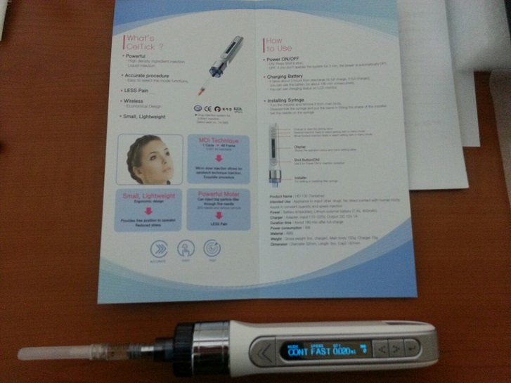 这款大的优势就是独有的回流技术,液体0丢失! 在家就可以自己给自己做水光啦,做一次水光等同于敷1000次面膜哦! 世界初,携带式,充电式填冲剂自动注射器 与手无法比较的细腻,无论从哪个方向哪个角度都可以顺利的注射从根本上会制止过多注射的 状况可以预防事故发生医生注射时 与用手直接注射相比,因使用更细的针头,伤口, 痛症, 淤青明显减小 患者的满足度大大上升使用 celtick3d 这个产品的医院 不会有浪费药物的现象 新手医生也可容易手术出漂亮的形状 ***操作过程简介及*** 世界初携带性填充剂自动注入器 注入填充剂/麻醉剂兼用 世界初可反复使用的注射器(充电式) 可持续注入(制酸剂),适当量注入(水润光泽剂) 可调整注入量,注入速度 可定量注入对微注射(滴)要求的眼袋,嘴唇部位等的填充剂 超低速/定速/定量的舒缓的注入可缓解痛症 可通过极细的针头注入填充剂 简单,容易的使用方法 增大手术时的安全性和便利性 填充剂,水光注射手术经验不丰富的新手医生也可容易的手术出漂亮的形状可充电迷你便携式水光注射仪器,可定量定次定速定针深度自由调整数据注射填充水光针剂,玻尿酸,PRP,PPP,PPC 等,毫无浪费药品! 它 使得皮肤维持紧实后针头进入到准确的深度用多针来注入营养物(如玻尿酸和胶原蛋白)。 ㈤:祛斑 十一大优势: 2. 时间短(整体脸部:15分钟); 4. 美疗后可马上恢复日常生活; 6. 利用声压装置来提升; 8. 在OLED画面上准确的调节; 10.物美价廉 美白,弹力 补水 因年龄增大,肌肤弹力纤维会随之流失,使原本紧致有弹性的皮肤变得松弛. 通过迷你水光注射仪器把生长因子、干细胞等多种维生素输送到真皮层,促使纤维母细胞重新激活,修复肌肤并使其收紧. 祛皱/妊娠纹 一个疗程分为3次,每间隔3-4周做一次.之后可以每隔3个月做1次维护.这样就能使皮肤细纹减少.毛孔收缩,呈现水润.美白.细腻.饱满.紧实,且具有光泽和弹性. 韩国celtick3D智能充电式 便携式水光仪器 2400元/套