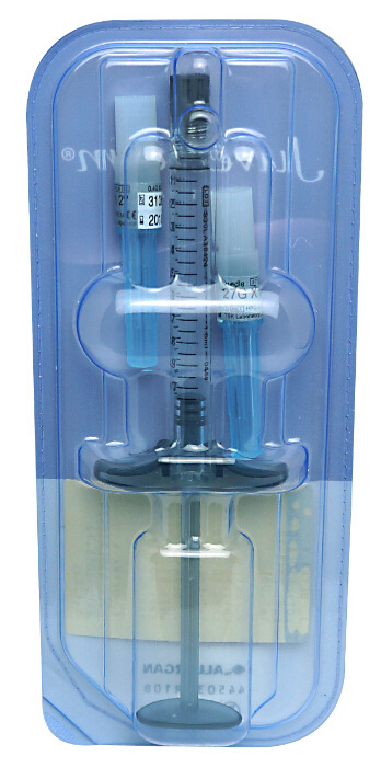 喬雅登(Juvederm)自2000年開始即被歐洲用於美容醫學,2006年6月於美國核准使用。注射劑僅會造成輕微不適,副作用通常很短暫且與注射區域有關,大部分的副作用在三天內會消失,患者可能會有注射區域泛紅、疼痛、硬化、腫脹、瘀血、搔癢或變色。大部分患者在療程後可立即進行正常活動。