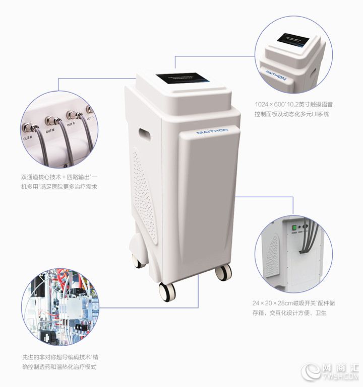 国内首创全息生物电无创检测技术、国际先进中低频电磁离子理疗技术、国际 先进无创伤动态拔罐治疗技术、激光超导治疗技术、针灸及按摩等多种全新中医 理疗模式、中药离子导入技术 招商热线15981970120朱 治疗原理: 通过热疗和促进剂(水化剂、角质层剥离剂)的应用对皮肤进行预处理增加 通透性,使脉冲电流让a-螺旋结构的多肽发生变化,产生允许药物通过的生 物通道,通过超声波导入的电泳作用和电趋向性,使药物粒子充分水化,以 利于粒子的透皮转运,使药物中的有效成分深入、有效地透过皮肤粘膜快速 进入人体,靶向作用患部病灶。通过以上方法的协同作用促进了药物向体内 有效转运。并结合中医经络理论,通过对相应穴道的刺激达到疏通经络、行 气活血,扶正祛邪以达到提高人体免疫力的功效。 产品特点: 1、依据胃肠疾的病理特点,结合特点的穴位和特点部位,运用国际先 进远红外热疗透皮吸收和靶向导入技术,将中药离子成分迅速导入人体,直 达病灶,效果直接、显著、无毒副作用。 2、国内首创全息生物电无创检测技术 3、国际先进中低频电磁离子理疗技术 4、国际先进无创伤动态拔罐治疗技术 5、激光超导治疗技术 6、针灸及按摩等多种全新中医理疗模式 7、中药离子导入技术 8、脉冲导融技术 9、远红外热疗技术 10、微电脑cpu数码芯片技术 11、自动选穴、精准定位 12、豪华、彩屏、语音提示 13、动态拔罐技术 14、超声导入技术 15、安全、快速、高效 产品功能: 1、定向透药 直达病灶 仪器特设的非对称中频电流,保留了一定能量的负向脉冲,让皮肤组织细胞 重新排列,促进皮肤电阻下降,扩张小动脉和毛细血管,血管壁透性增加, 改善局部血液循环,对药物离子产生定向的推动力。其特有的非对称“定向 透药”技术,经多家医院临床验证,不仅药物的导入深度和效果明显提高, 同时可削弱皮肤的刺痛感并有效地消除皮肤丘症的发生。 2、温热治疗 安全有效 热疗是中医常用的祛风除湿治疗方法,可通经活络、促进血液循环、加速水 肿的吸收消散。本仪器采用13.5V特低安全电压,通过螺旋电热线产生 35℃-50℃热量,使药物在热雾器内被加热,激活而雾化成分子微粒,形成涡流和雾场,导引药物分子微粒向体内深层移动,达到“定向透药”目的,以产生一系列热效应和药物效应。为了避免极板温度过高而引起烫伤,在电路设计上采用了过流和过热双重保护功能,使用过程安全可靠。 3、螺旋动态 生物磁疗 动态生物磁场,一定剂量的磁场作用于人体穴位可以调和气血、疏通经络,有明显的止痛、消炎、活血化瘀的功效。仪器治疗电极上的螺旋电热线通过50Hz交流电,产生交变动态磁场,能有效调节患者患处的局部生物磁场,使人体组织中的水分子受磁活化,并软化和溶解血管中的沉积物,从而到气血通顺目地。 4、数码仿生 按摩理疗 仪器选用新型微电脑芯片和多元数码计算产生的组合波形,对中频电流的调制方式进行了模仿人手按摩功能的计算处理,即动态多元仿生调制,使患者在治疗过程中,充分感受到多种仿生按摩手法,治疗过程更加贴近人体的自然状况,不仅提高了疗效,而且更加舒适。 5、综合治疗 更多选择 可同时或选择地进行定向透药、热疗、磁疗、按摩等方式治疗,使各种治疗机理相互补充,更充分的调节人体的生理机能、改善微循环、增强免疫功能,实现对疾病的多角度综合治疗,达到更加理想的治疗效果。 6、安全保护 双重隔离 产品全面贯彻国家新安全标准,具有双重隔离、开机保护、短路保护、声光提示等多重保护功能。 招商热线15981970120朱 治疗效果: 1、镇痛消炎作用: (1)中频电流可兴奋周围神经的粗纤维,通过“闸门”调控,抑制传导疼痛感觉的细小纤维,从而镇痛。 (2)中频电流可以扩张血管,促进血液循环,加速局部痛性物质的排除。 (3)中频电刺激还可使人体释放具有镇痛作用的物质。 2、兴奋神经肌肉组织: 中频电流能产生细胞膜内外极性的改变,使膜电位去极化,形成动作电位,因此兴奋神经肌肉,产生肌肉收缩。 3、改善血液循环: (1)轴突反射:轴突反射是指当中频电流作用在人体体表时,电刺激传入神经至脊髓后角,兴奋传出神经,使皮肤的小动脉扩张。 (2)皮肤受电刺激时亦会释放组织胺、P物质等,它们能使血管扩张。 (3)植物神经作用:低频电流可能通过抑制交感神经的活动,促进局部血液循环。 (4)肌肉活动的代谢产物:肌肉活动的代谢产物,如乳酸、ATP、ADP等均有明显的血管扩张作用。 (5)肌肉的收缩作用:低频电流可引起肌肉收缩,肌肉节律性收缩和舒张形成“泵”的作用,从而促进血液和淋巴液的回流。 4、软化瘢痕、松解粘连: 中频电流能扩大细胞与组织的间隙,使粘连着的结缔组织纤维、肌纤维、神经纤维等活动后分离。 5、巩固疗效: 患者使用小针刀治疗后2—3天,待创面基本愈合,用本仪器进行定向透药治疗,有镇痛、消炎,巩固疗效的作用。 使用方法: 1、使用一次性理疗皮肤电极片治疗时,分别将电极片贴于病灶部位和相关治疗穴位,用定向透药仪进行药物导入治疗; 2、使用一次性药贴治疗时,从包装袋内取出两片药贴,分别贴于病灶部位和相关穴位,上压硅橡胶平板加热电极,用松紧绑带将电极板和药贴固定,使其紧密接触皮肤,即可开机进行综合治疗。 招商热线15981970120朱