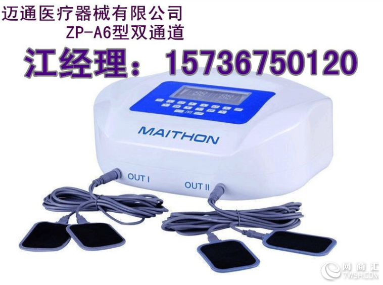 性能特点: 1、脉冲治疗:治疗频率高,渗透能力强,可刺激人体更深层次经络和穴位,直达病灶。 2、数码技术:采用高科技数字电路、微电脑CPU数码芯片技术,汇集多种功能,产品性能稳定可靠,适用范围广。 3、设计先进、使用简单: A、设计轻巧、操作简单,阅读说明书后即会使用; B、采用彩色液晶显示屏(LCD)十英寸触摸屏,显示直观清晰 C、治疗操作全部采用轻触按键; 4、治疗模式多样:全新自我感觉模式,具有推、拿、按、敲、捏、揉、拔,捶、针灸等多种治疗模式,治疗模式丰富多样。 5、输出力度大,治疗输出强度可调。 6、治疗部位众多:本治疗仪采用先进的传统中医理论,结合人体经络学、生物物理学及现代数字电子技术,可对全身疼痛处做治疗,同时也可有针对性的对各病患部位做治疗。 注意事项: 1、注意不要把治疗电极一前一后放置心脏两侧。 2、使用过程中,如感觉不适时,请立即暂停使用。 3、两电极好成对贴于相对称的部位或邻近配穴治疗。 4、经治疗后,神经敏感度提高,可能有痛觉感,乃属正常。 5、两治疗电极应避免直接相碰、相触,以免损坏仪器。 6、请勿把高频手术设备和治疗仪同时连接到一个患者身上。 做治疗时,须将配件连接好后,才能开启电源和相应的输出强度;严禁先开启输出强度再连接配件,以免造成灼伤和仪器损伤 主治: 颈椎病、肩周炎、腰椎间盘病变、腰肌劳损、骨质增生、膝关节炎、坐骨神经痛、风湿性关节炎、类风湿腰腿痛、网球肘炎、臂丛神经痛、手脚麻木、肌纤维组织炎、软组织挫伤、腱鞘炎、中风后遗症、前列腺炎、妇科病等多种常见病;恢复骨病正常生理结构(曲度),达到复位的作用,改变骨病失稳,缓解或消除骨质增生;消除水肿、炎症、改善脑供血不足;解除压迫神经造成的疼痛;全方位调整骨病周围组织机能,消除病症。 六重功效: 电热敷疗效应 促进组织中渗出物的吸收与消散,加速对药气粒子的吸收。 远红外疗效应 消炎、消肿、解痉、祛风、驱湿、舒经散寒、活血化瘀。 交变磁场效应 磁疗能量起到消炎、消肿、降压、止泻、镇痛及活血化瘀等作用。 穴位刺激经络 疏通经络、调整气血、平衡阴阳、增强免疫力。 微量元素补充 导磁磁芯富含多种人体必需的量元素,达到补充效应。 中药粒子导入 内病外治、透皮给药、透皮吸收、恢复人体机能 概述: 智能数码多功能治疗仪是河南迈通医疗有限公司生产的产品,该产品将中华传统医学的经络学与现代医疗学理论有机结合,并合理利用;把理疗学的温热效应、电磁效应、微波效应、红外线效应与人体穴位刺激经络相结合。该治疗仪机理是作用于经络穴位,进而对病变部位的生物磁场进行调节,使其产生一系列生理、生化反映以达到奇特的祛风除湿、温经通络、活血化瘀、散寒止痛的治疗作用,有效地起到了消炎止痛、解痉消肿、改善组织营养、促进血液循环、加速新陈代谢,恢复人体机能的治疗功效。治疗过程简单、方便、有效。