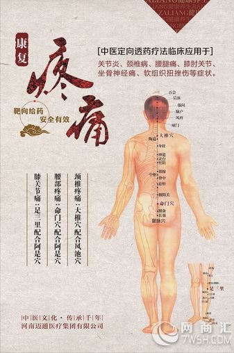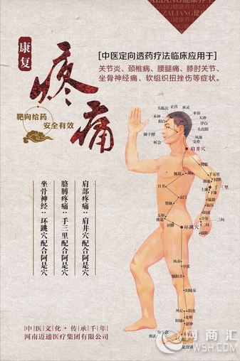 概述: 中医定向透药治疗仪是河南迈通医疗新技术有限公司生产的产品,该产品将中华传统医学的经络学与现代医疗学理论有机结合,并合理利用;把理疗学的温热效应、电磁效应、微波效应、红外线效应与人体穴位刺激经络相结合。该治疗仪机理是作用于经络穴位,进而对病变部位的生物磁场进行调节,使其产生一系列生理、生化反映以达到奇特的祛风除湿、温经通络、活血化瘀、散寒止痛的治疗作用,有效地起到了消炎止痛、解痉消肿、改善组织营养、促进血液循环、加速新陈代谢,恢复人体机能的治疗功效。治疗过程简单、方便、有效。 注意事项: 做治疗时,须将配件连接好后,才能开启电源和相应的输出强度;严禁先开启输出强度再连接配件,以免造成灼伤和仪器损伤 主治: 颈椎病、肩周炎、腰椎间盘病变、腰肌劳损、骨质增生、膝关节炎、坐骨神经痛、风湿性关节炎、类风湿腰腿痛、网球肘炎、臂丛神经痛、手脚麻木、肌纤维组织炎、软组织挫伤、腱鞘炎、中风后遗症、前列腺炎、妇科病等多种常见病;恢复骨病正常生理结构(曲度),达到复位的作用,改变骨病失稳,缓解或消除骨质增生;消除水肿、炎症、改善脑供血不足;解除压迫神经造成的疼痛;全方位调整骨病周围组织机能,消除病症。 六重功效: 电热敷疗效应 远红外疗效应 交变磁场效应 穴位刺激经络 微量元素补充 中药粒子导入 性能特点: 主要用于治疗颈椎、胸椎、腰椎、膝肘关节、手指、足趾等各类骨质增生疾病,以及神经根水肿、软组织挫伤、炎症、肢体麻木、肩周炎、腰肌劳损、关节扭伤、风湿性关节炎等症;在按摩状态下,对骨折愈合、疤痕粘连、胃痛、腹痛、牙痛、神经痛等疾病也有很好的疗效。 工作频率:中频 输出强度:( 定时时间:自动设定 热疗温度:小于 热疗电源: 工作电源:交流 功 配置清单: 主机 吸水透热电极板 自粘电极 弹性绷带 用户手册 1、新型微电脑芯片设计,两路输出,多重安全保护功能。 2、特设的非对称中频电流将药物离子更深更有效的导入病灶部位。 3、远红外热敷,促进血液循环。 4、适用于家庭、医院保健治疗。 1. 本仪器所用电源应是带地线的三芯插座,并接好外接地线。 2. 启动电源开关后再放电极板,摘掉极板后再关电源开关。 3. 关于治疗剂量的大小应因人而异,不能一味追求大电流。应以感觉舒适为宜。对皮肤感觉灵敏度差的患者更应注意防止烫伤。选择治疗剂量大小的原则是:小剂量对人体起兴奋作用,大剂量对人体起抑制作用,应根据病情需要选择适当剂量。 4、治疗时,必须用浸湿浸透的大厚棉垫,且大棉垫厚面下边是涂有药液的小药垫,小药垫下边是皮肤患部,否则易引起烧、烫伤皮肤。注:棉垫均应抻平,并与皮肤接实。 5. 医生应告诉患者在使用遥控器时若身体感到不适,应立即按住减键,此时输出剂量会逐渐递减至零,然后由医生酌情处理。 6. 医生在治疗过程中若发现某路患者有不适感或其它紧急情况均应立即按动该路复位键即可以使该路输出立即回零。 7. 患者使用过的小药垫、大棉垫应及时煮沸清洗消毒,防止交叉感染。 8. 应用本仪器进行药物导入时,所导入药物应在医生指导下进行。对人体导入有关过敏性反应的药物(例如:青霉素等) 应对患者进行皮试试验后适应者方可进行。 9. 心脏及心脏的投影部位、太阳穴、孕妇的下腹部、伤口及出血部位均不得作为治疗部位。 10. 对患有心力衰竭、严重心脏病及装有心脏起博器、恶性肿瘤、感染性炎症、破伤风、恶液质、有出血倾向、精神病患者及对直流电不能耐受者,均应禁止使用本仪器进行治疗。 招商热线:15981970120朱1:适应症
