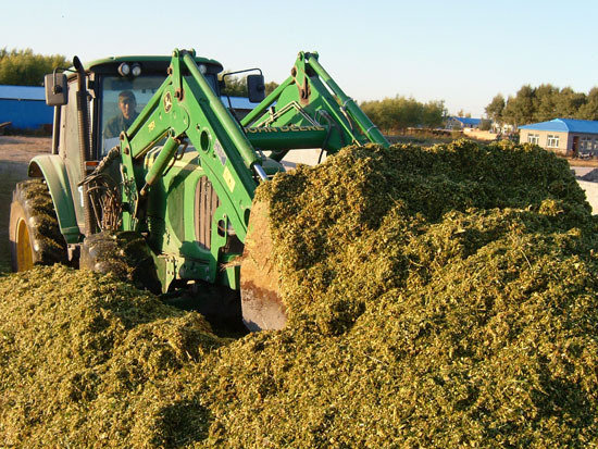 酯链被酶解,促使秸秆软化,体积膨胀,木质纤维素转化成糖类。连续重复发酵又使糖类二次转化成乳酸和挥发性脂肪酸,使pH值降低4.5~5.0,抑制了腐败菌和其他有害菌类的繁殖,达到秸秆保鲜的目的。其中所含淀粉、蛋白质和纤维素等有机物降解为单糖、双糖、氨基酸及微量元素等,促使饲料变软、变香而更加适口。终使那些不易被动物吸收利用的粗纤维转化成能被动物吸收的营养物质,提高了