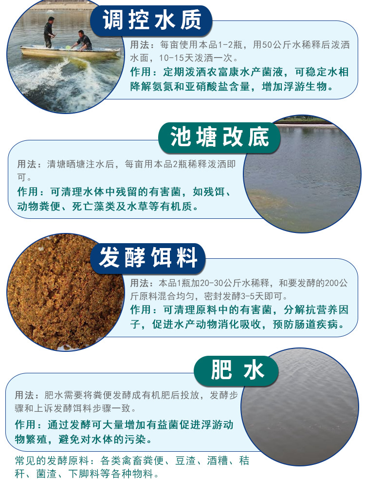 污染,使用农富康水产菌液可增加浮游生物为鱼、虾、蟹等提