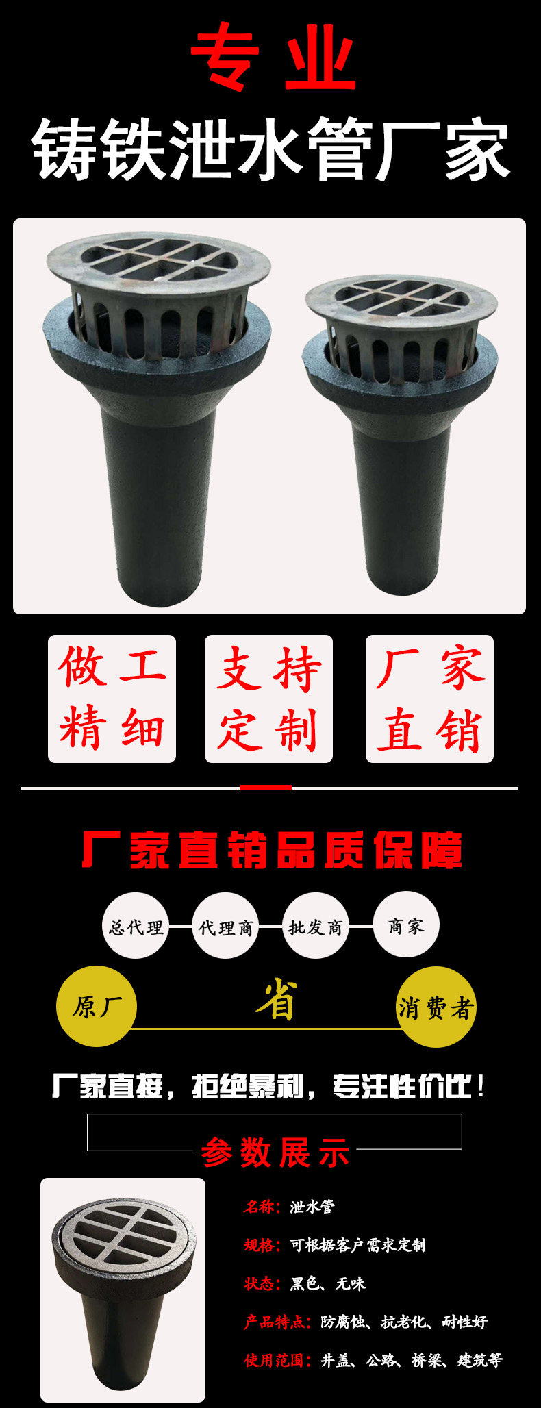 铸铁泄水管铸铁桥梁排水格栅雨水斗桥梁铸铁泄水管规格齐全